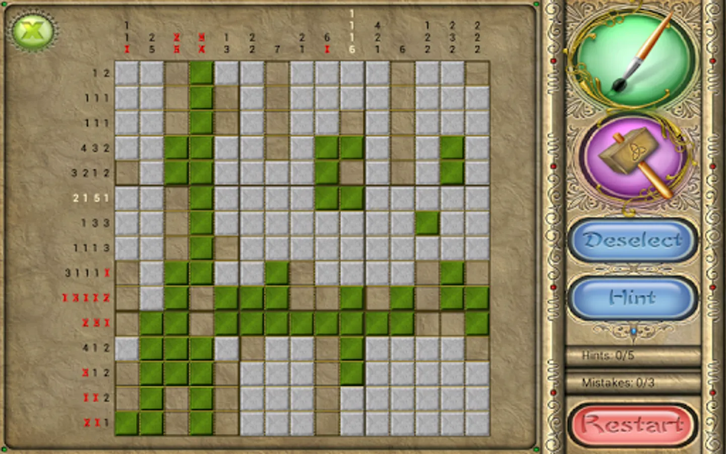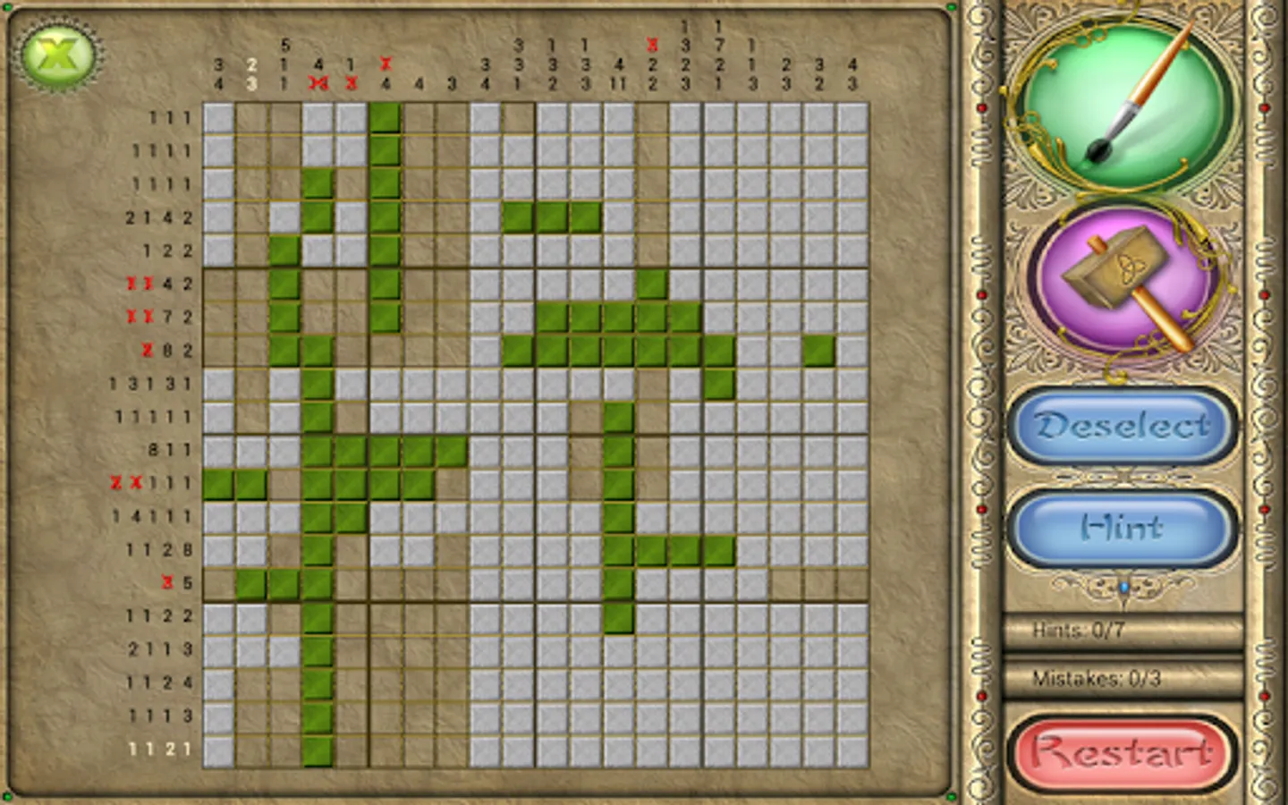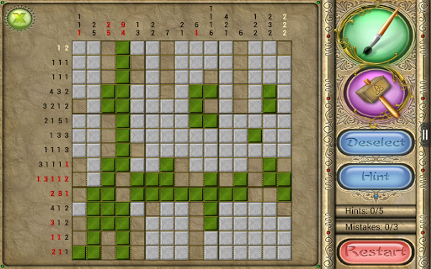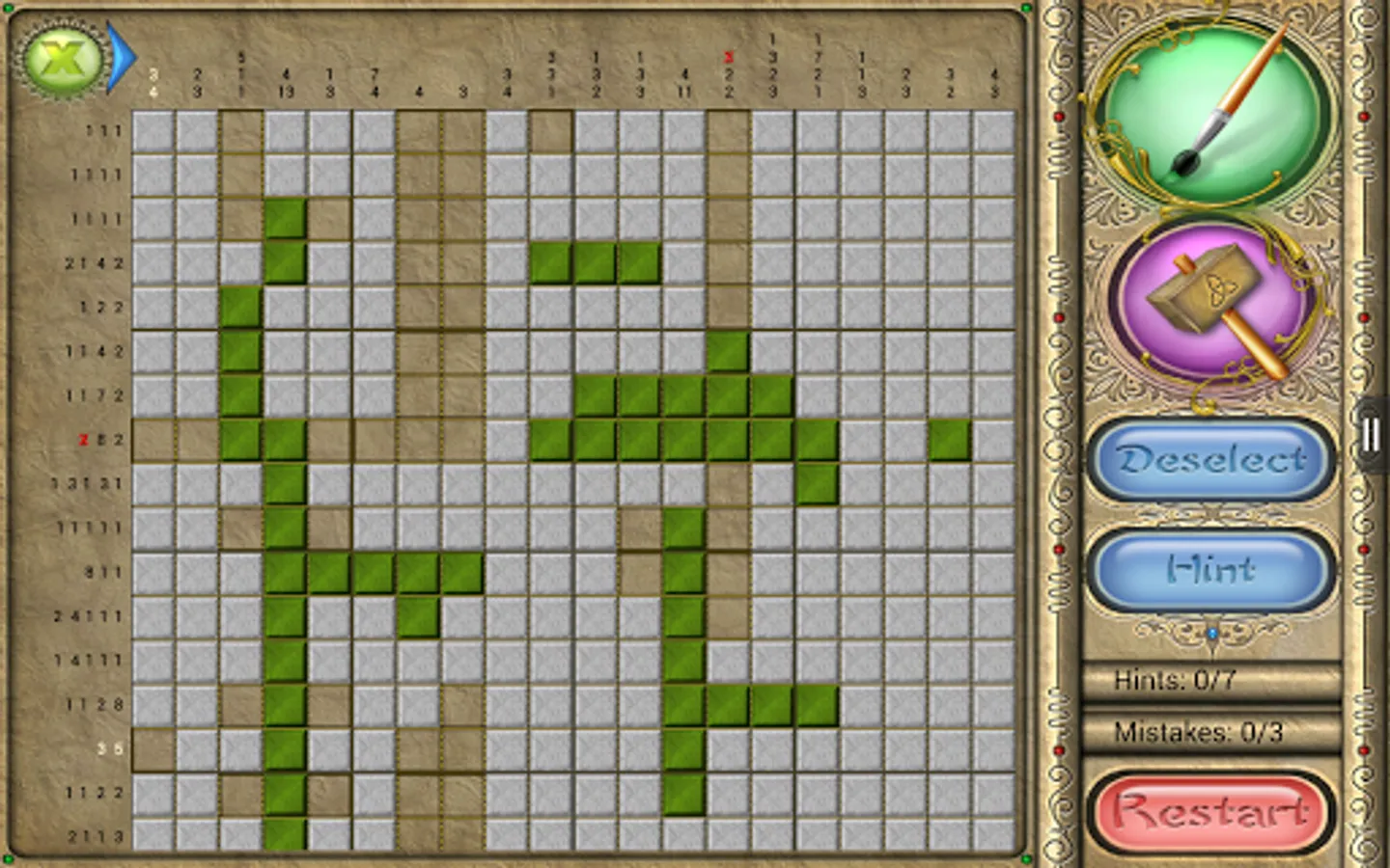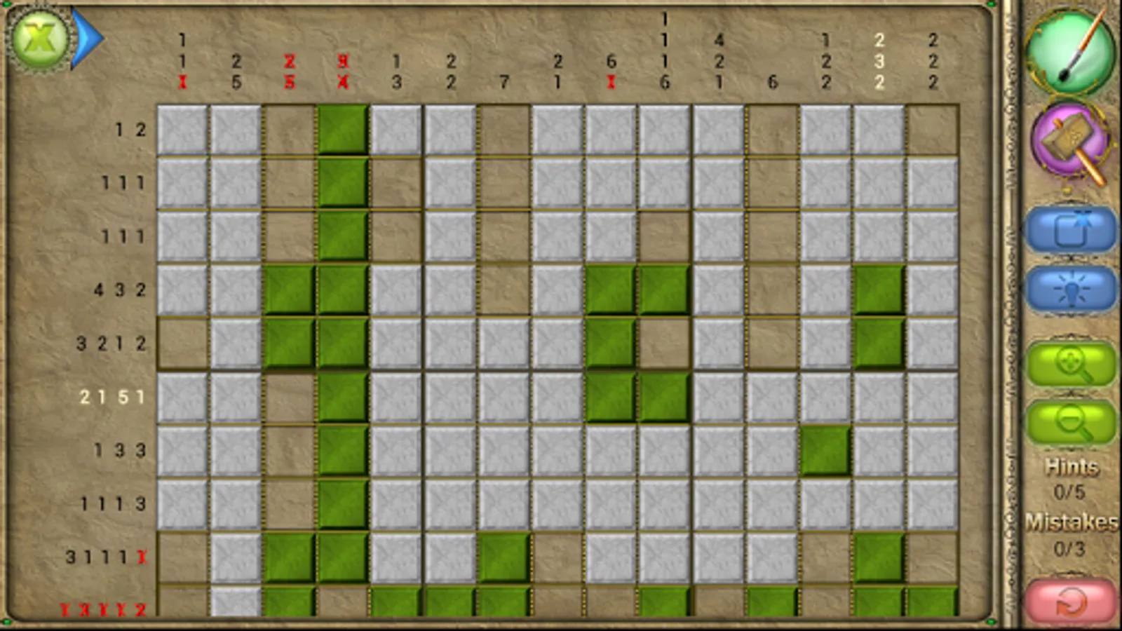 An old Japanese logic puzzle takes on a new look with FlipPix Art! Touch tiles to paint them or break them to form colorful components of paintings. The goal is to use logic to determine which tiles should be filled to reveal a hidden picture.