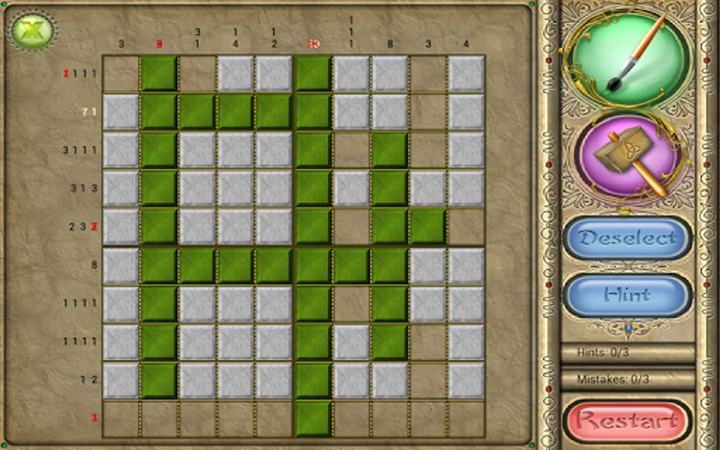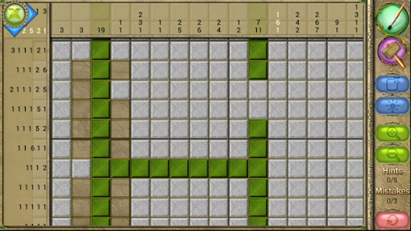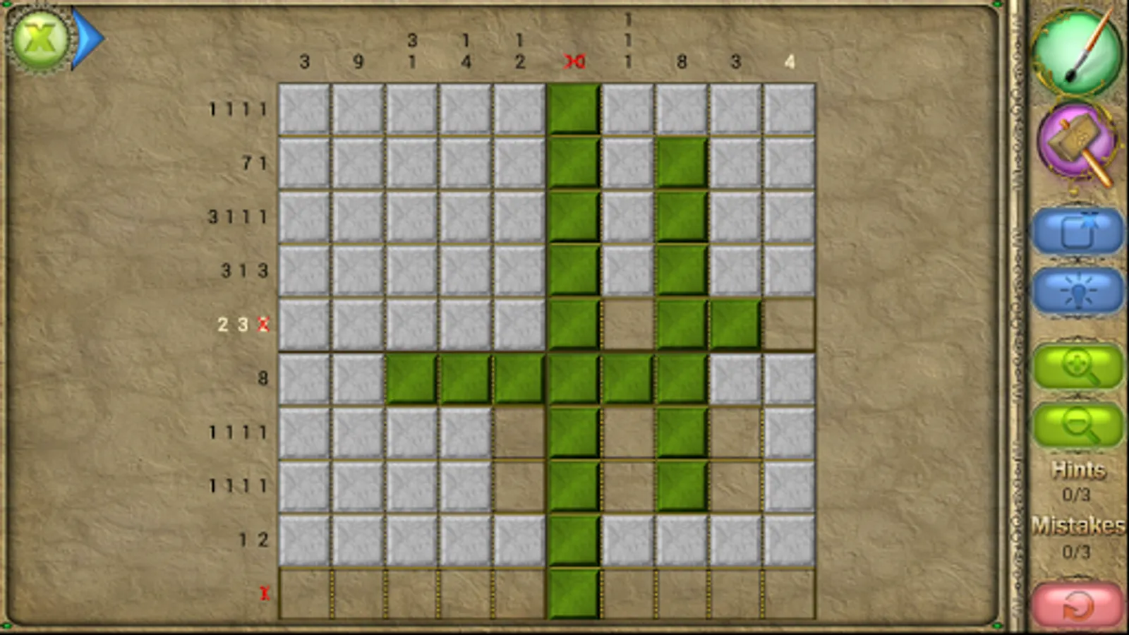 An old Japanese logic puzzle takes on a new look with FlipPix Art! Touch tiles to paint them or break them to form colorful components of paintings. The goal is to use logic to determine which tiles should be filled to reveal a hidden picture.