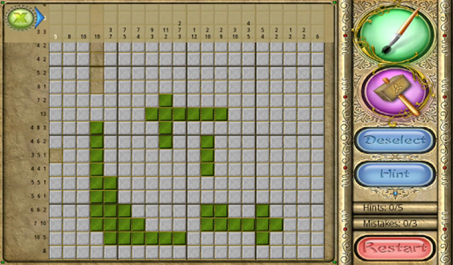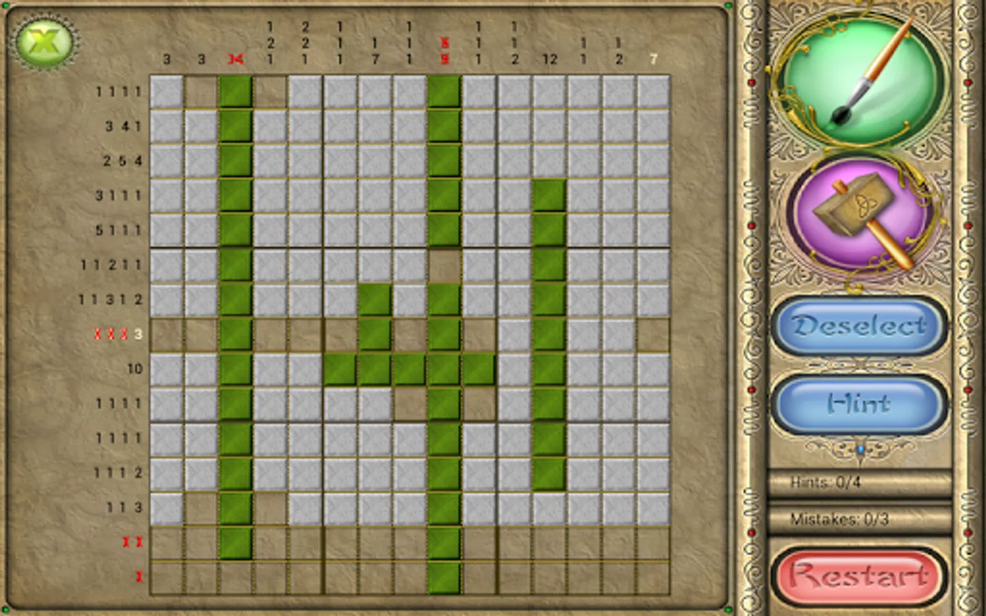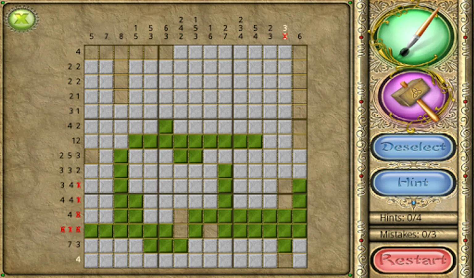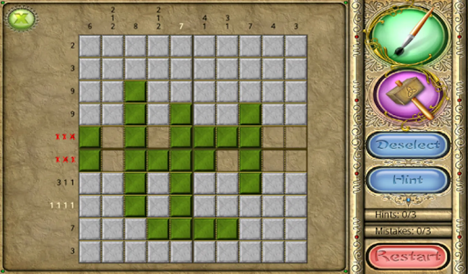 An old Japanese logic puzzle takes on a new look with FlipPix Art! Touch tiles to paint them or break them to form colorful components of paintings. The goal is to use logic to determine which tiles should be filled to reveal a hidden picture.