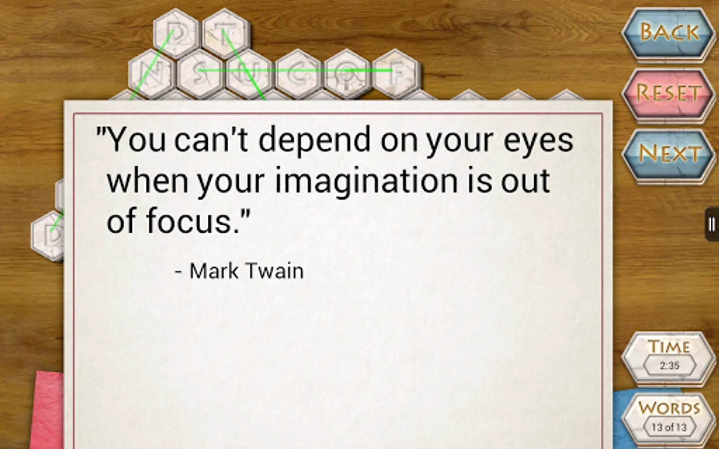 Ravels - Wisdom introduces players to the Ravels family with a free game that incorporates "words of wisdom" quotations handed down through the ages. Ravels - Wisdom contains 30 puzzles in 3 challenge levels, with quotations from those on the world stage like Winston Churchill, Mark Twain, Maya Angelou, and Warren Buffett.