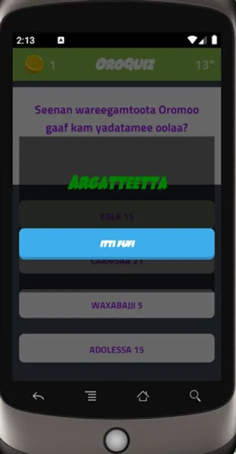 This game is Free, Containing Various Quiz related to Oromo Tradition, culture, history.
