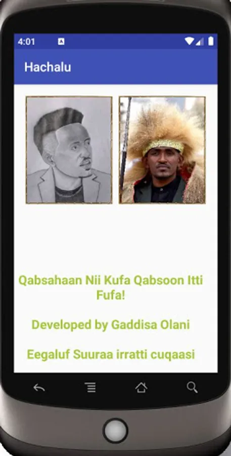 Software kun yaadannoo Artist keenya kabajamaa Haacaluu Hundessaf kalaqameedha. Game kana keessas suuraa hacalu lamatu jira. Ega ilaaltanii suuraa isaa laman keessa tokko filadhu, sanbooda suuran sun randomly ciccitee isinitti mullata. Isa ciccitee dhufe walitti fidaati suuraa jalqaba argitan sana uumaa. Yoo sirritti walitti qunnamsiistan akka mootan software ofiisan isinitti hima.