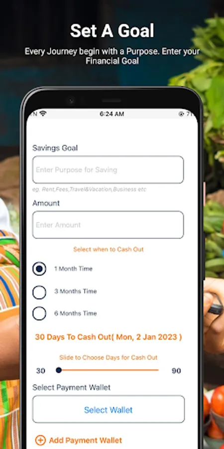 •Cash Out- User can only have access to their funds when the duration is due. Until the due date, user can only Top up or Load their Wallet. Funds are accessible even after the due Date