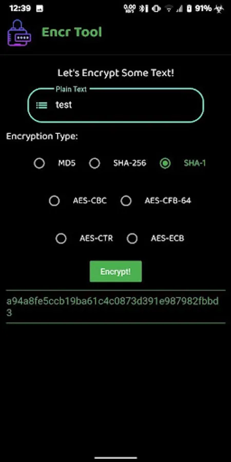 EncrTool is an Text Encryption Tool that provides many Encryption Options like MD5 and SHA-x and AES also we will implement another options and Decryption Option in the future updates.