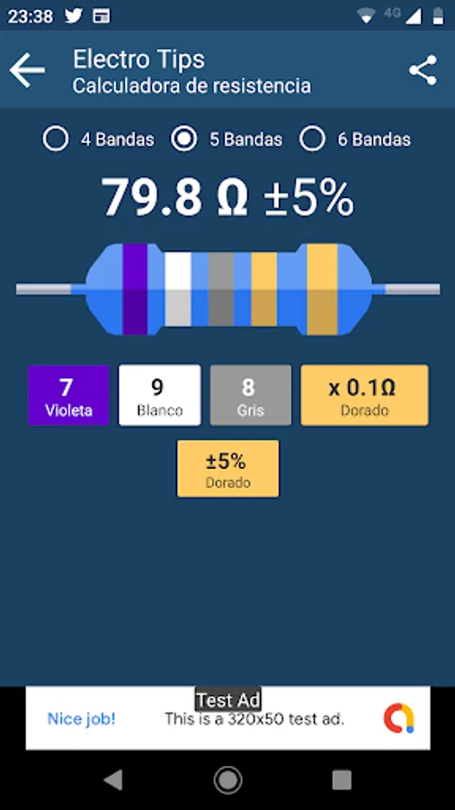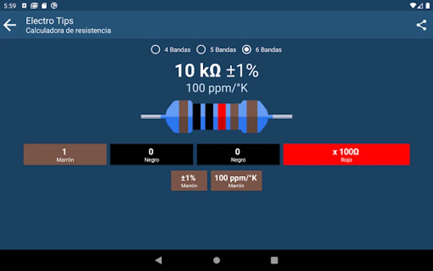 This is the first version of this tool that presents a fast, simple and intuitive way to select the colors of the resistance.