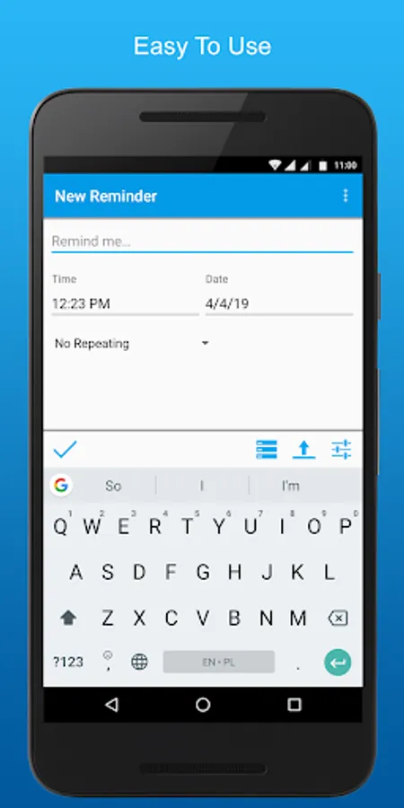 The goal of this application is to create a simple reminder in as few steps as possible. If you need to do something and you're worried that you may forget, simply set a reminder and the phone/tablet will notify you at the appropriate time. Simplest Reminder is the easiest to use reminder app in the whole Google Play!