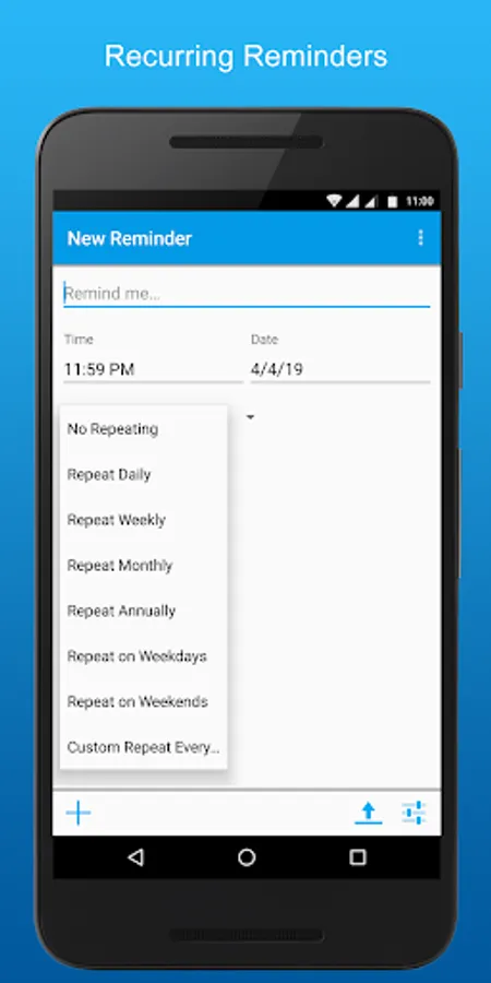 - Recurring reminders. Choose between daily, weekly, monthly, annually, weekdays(Mon-Fri), weekends(Sat-Sun), or customize the recurrence to suit the needs of your busy schedule