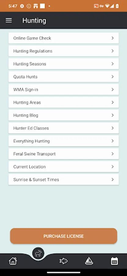 Purchase and store fishing and hunting licenses(Android 4.4+). Access to rules and regulations. Use geo-locating tools to enhance your recreational experience Wildlife Resources manages nearly 1 million acres of public lands for wildlife and habitat in Georgia. These WMAs are featured on the app.