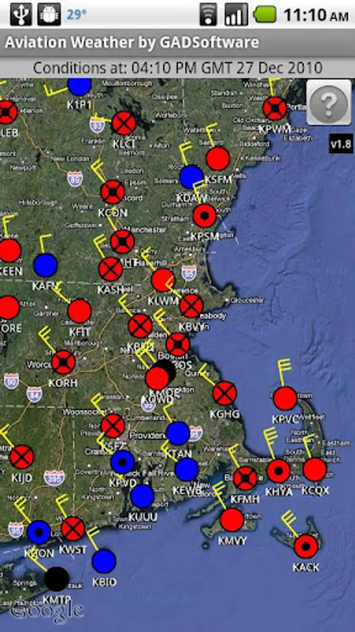 Aviation Weather by GADSoftware provides a graphical view of an entire region's weather conditions. Current conditions can be determined at a single glance (i.e. VFR, MFR, IFR, LIFR are obvious using unique symbols and color coding in the map display). METAR's and TAF information can quickly be displayed for each airport. Favorites provide an easy way to jump from region to region. The application is configurable, enabling the display to show airports using the default Google maps display or the satellite view. Wind speed can be displayed using wind barbs. Metar and TAF information can be displayed as either encoded or decoded. Date/time can be configured to show either UTC (zulu) or local time.