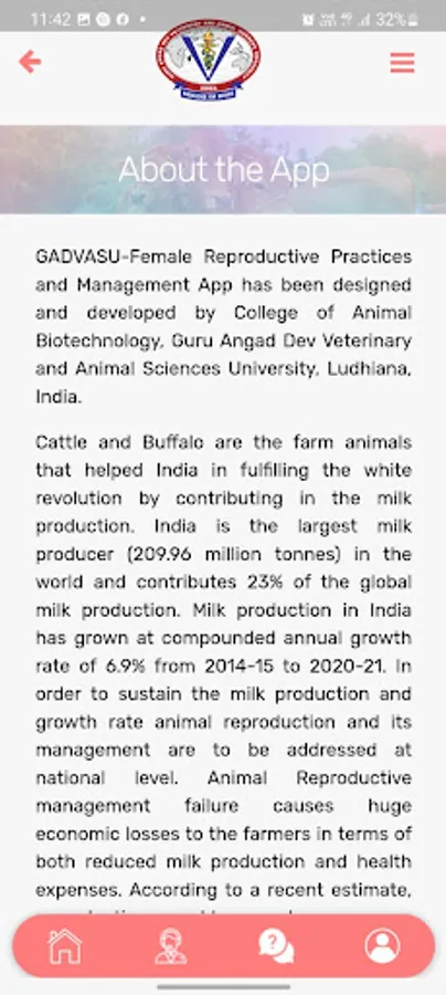 GADVASU-Female Reproductive Practices and Management App has been designed and developed by College of Animal Biotechnology, Guru Angad Dev Veterinary and Animal Sciences University, Ludhiana, India.