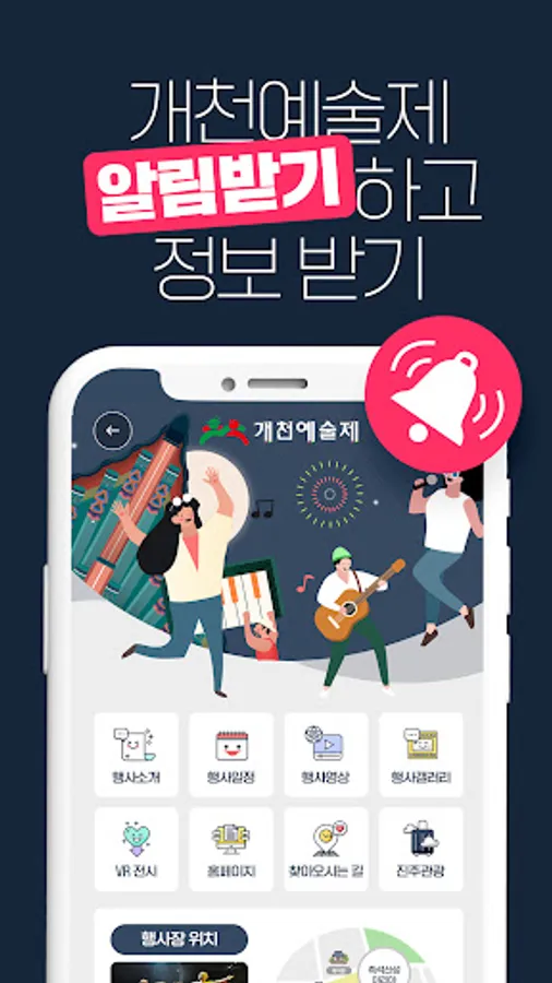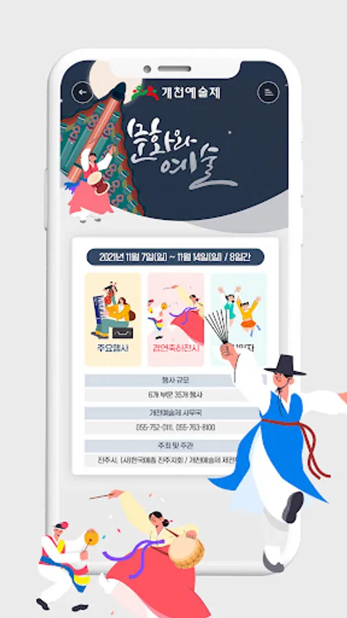 The Gaecheon Art Festival application provides event information guide and user participation space in the event introduction.