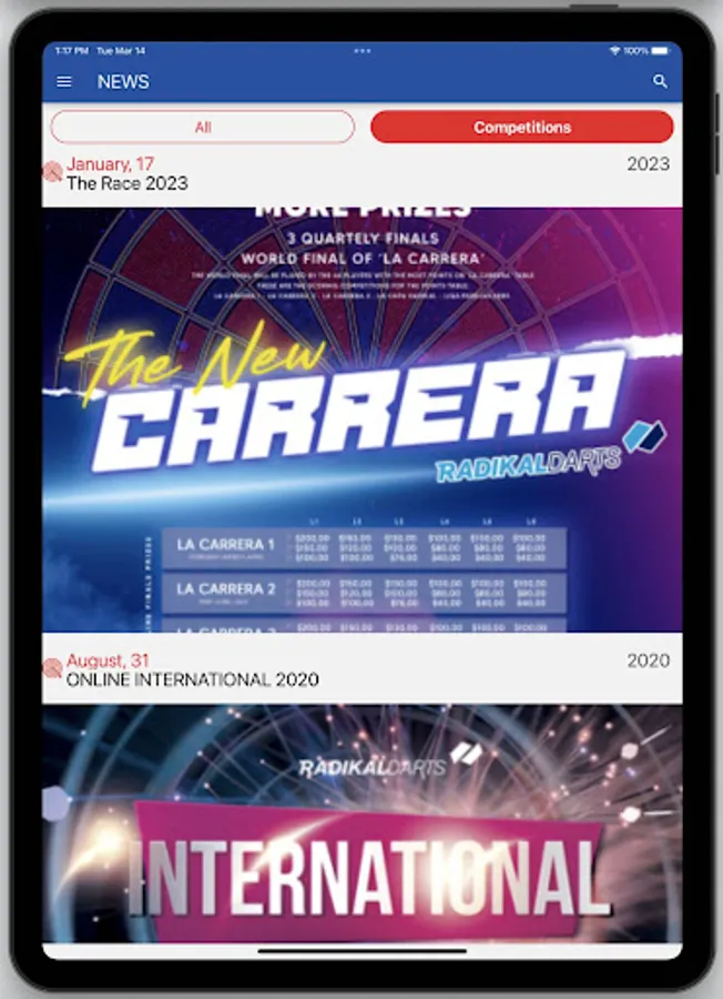 RadikalDarts Players is the new official app from RadikalDarts for all the darts players!! Search for your nearest dartboard machines wherever you are, you can watch all live classifications, manage your profile data, check your MPR/PPD rating, get the latest news from the Radikal world instantly and buy on the Radikal Shop. Now with new features: Top places, Official Players, social networks and much more!!