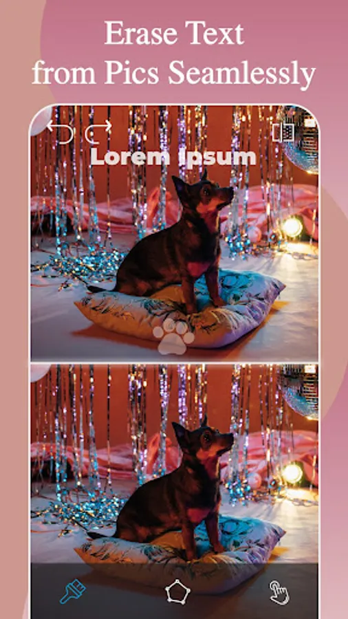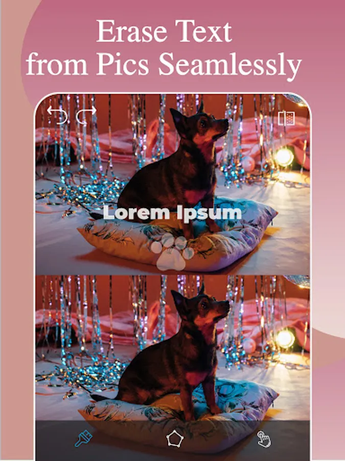 If you have disturbing text on your image, our app has you covered. Text remover lets you erase text from photos. With just a few taps, easily remove text from any photo.