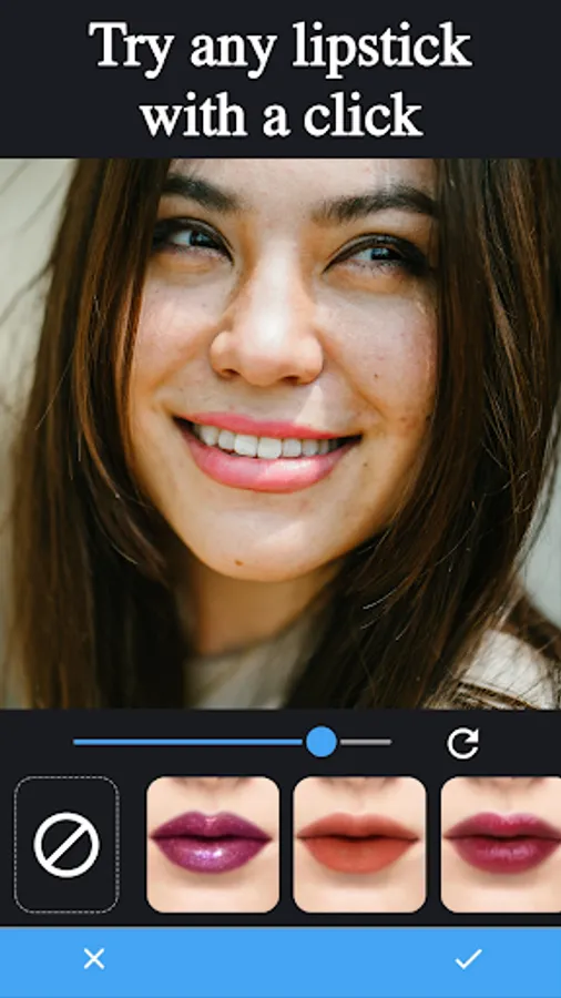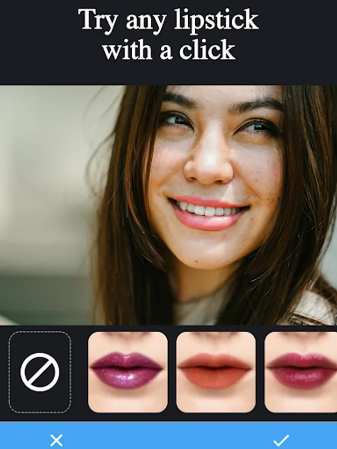 If you are not satisfied with the color of your lips, you can use our lipstick color changer tool to change the color of your lips. You can choose from a wide range of colors. Just with one click, you can change the color of your lips instantly.
