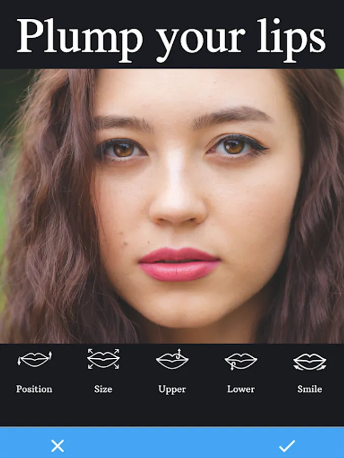 You can also use our lips plumper tool to make your lips look more prominent and attractive. Besides plumping, you can change the shape of your lips. If you are not smiling in the picture, you can use our tool to make anyone smile in the picture. No more unhappy people in your photos!