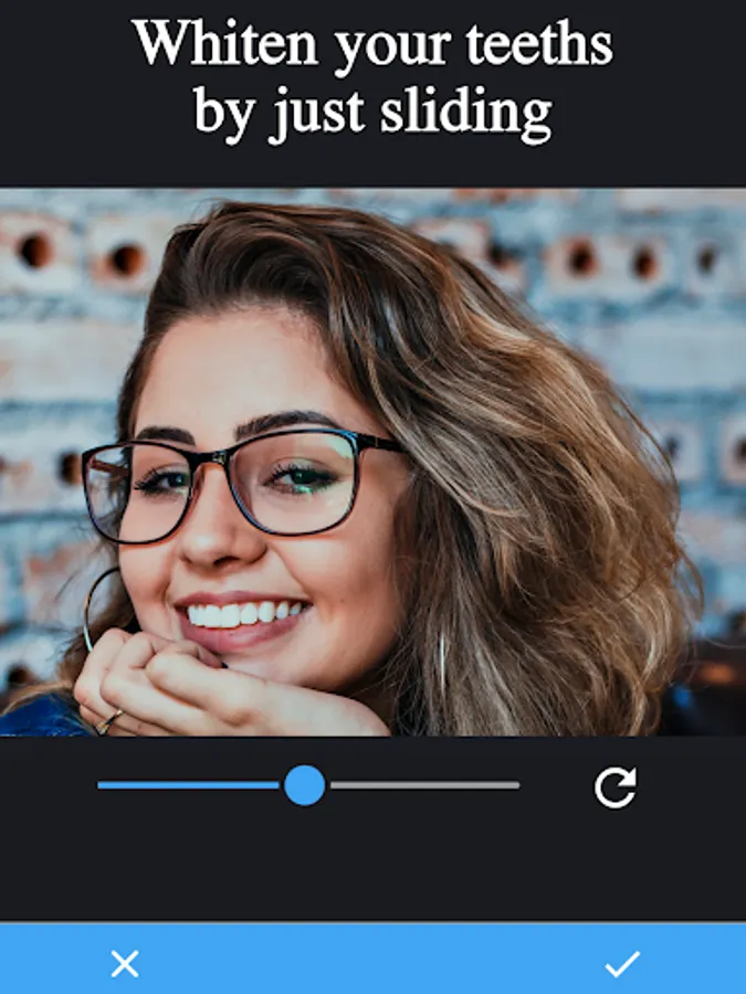 If your teeth are not white enough, don't worry! Don't let your photo to be ruined, just use our teeth whitening tool to whiten your teeth. It will also make them brighter and shinier.