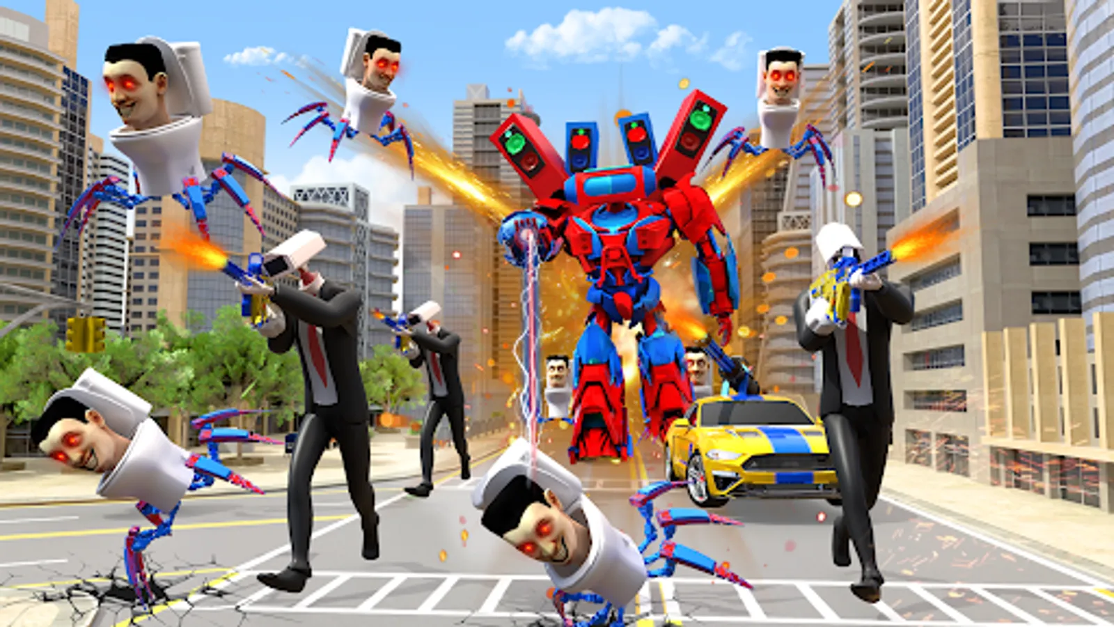 In Skibidi Toilet Defense, your mission is to guide our quirky character through a series of Skibidi robot war games related challenges. In this skibidi toilet monster game be careful of the monster toilet seat who is dodging the whole city, your goal is to complete each level with precision and robotic power. Flush away monster head and all the obstacles coming in your way?