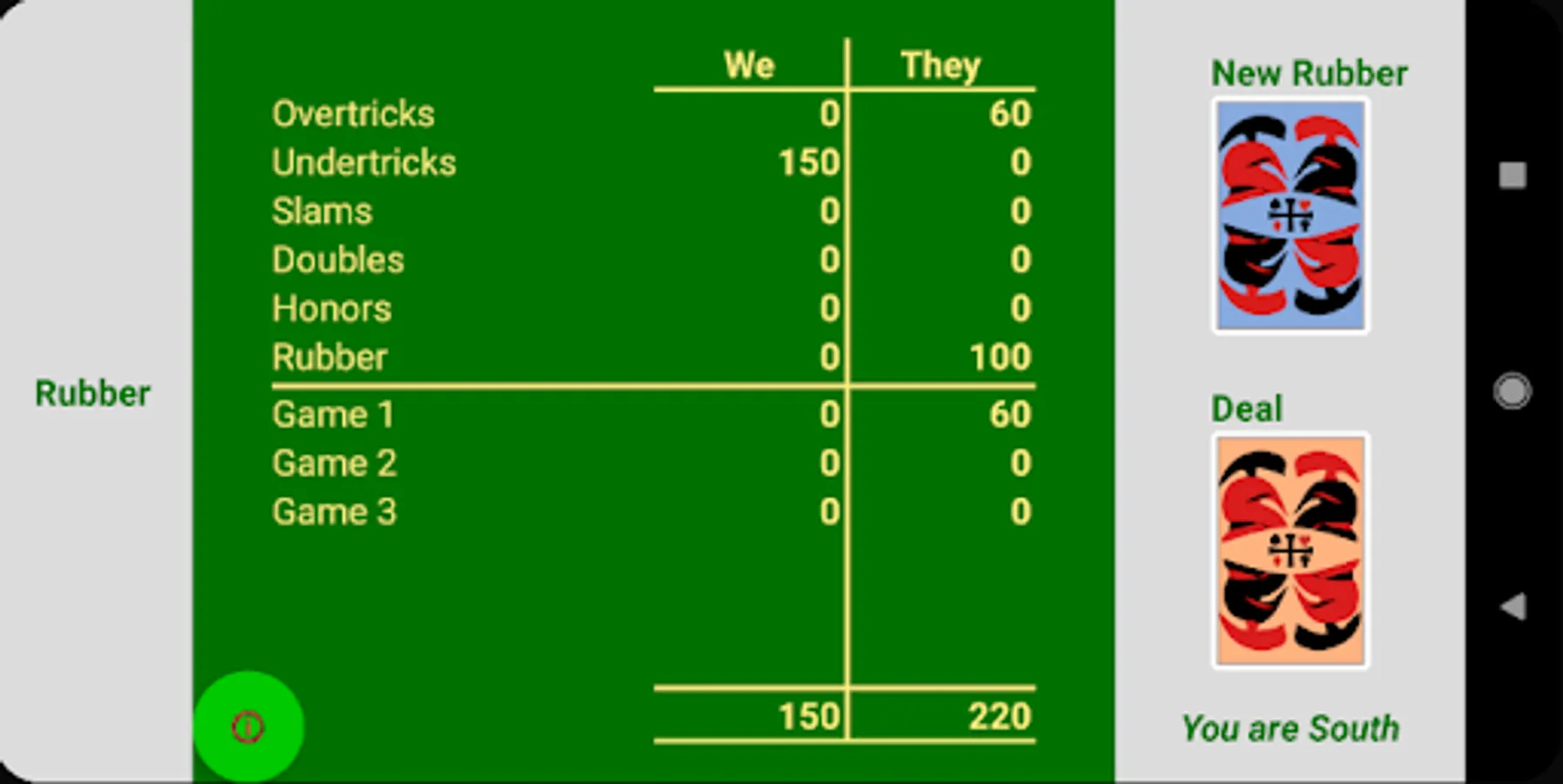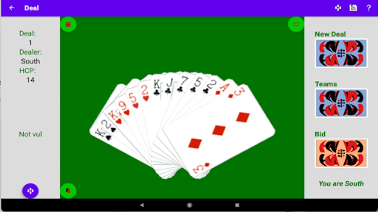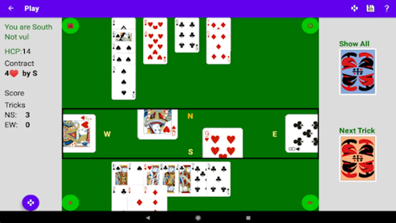 Learn and play Contract Bridge using Standard American, Acol or SEF (French) bidding. Play with rubber scoring or as a duplicate match.