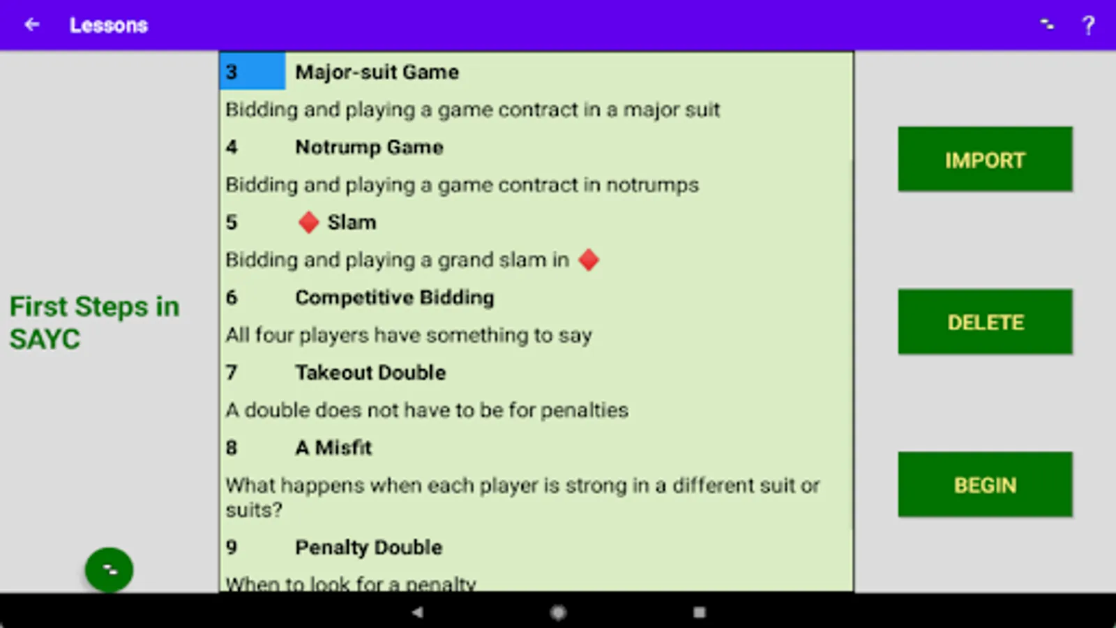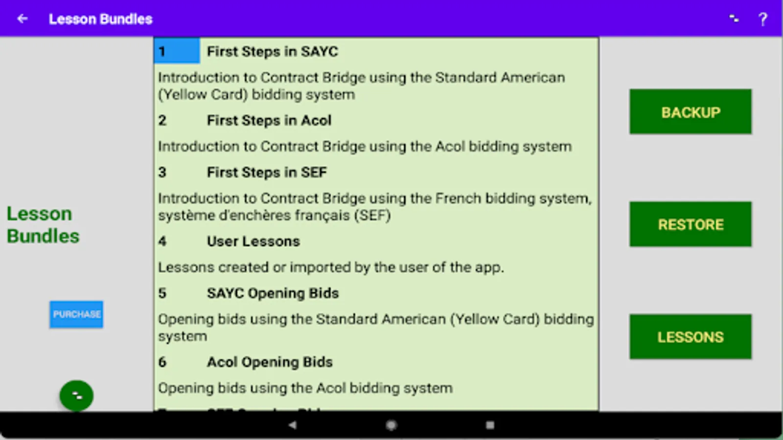 Bridge Tutor contains a starter pack of ten lessons for each of the three bidding systems it supports. Learn how bridge is played and why it is such an addictive game.