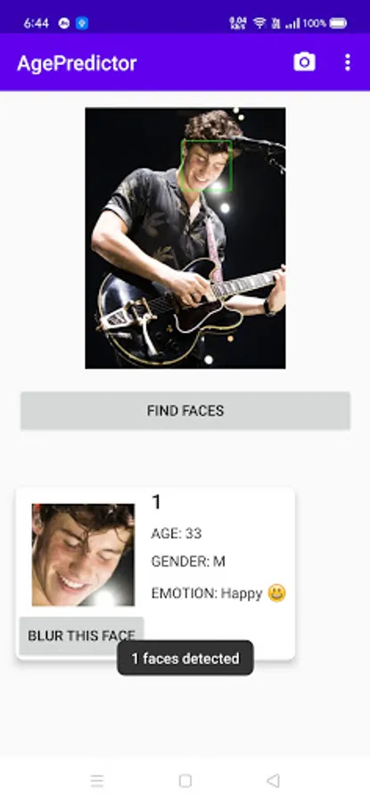 This app detects faces in a picture and predicts the age, gender, and emotion of the person based on the facial expressions.