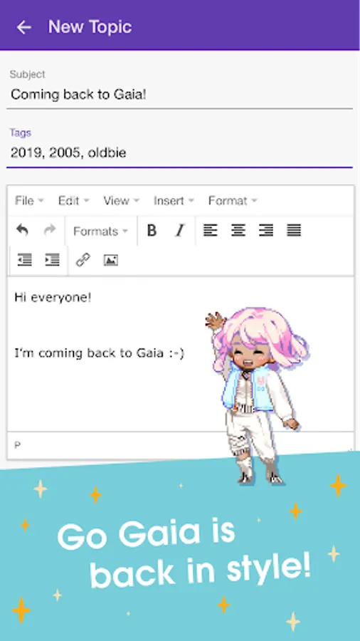 If you’re a member of Gaia Online, take your favorite features on the go. You can make new friends and talk about the topics you love in our forums, access your inner fashionista and dress up your avatar in different outfits to showcase your personality to your friends, and keep up to date on the latest announcements!