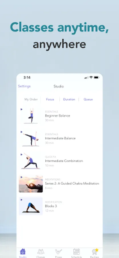 ⁃ Quickly search to find classes based on duration, focus, ability or level of intensity