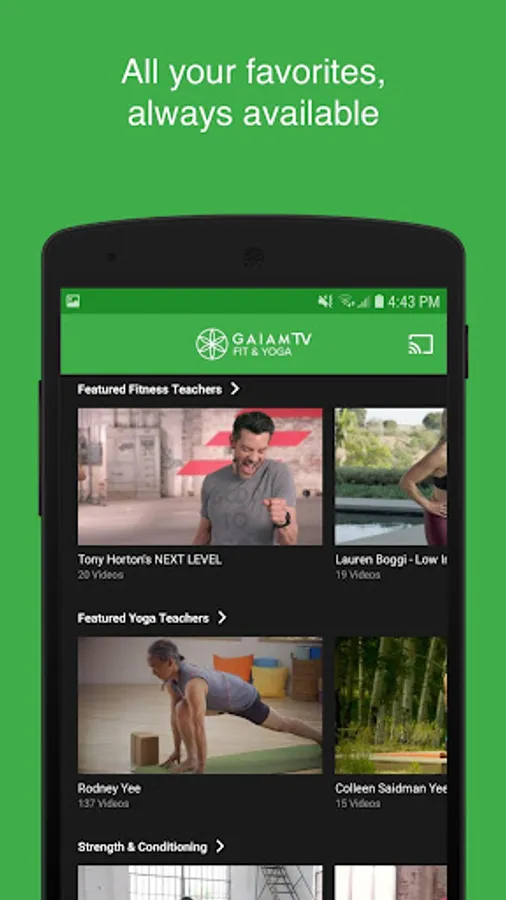 To access all features and content you can subscribe to Gaiam TV Fit & Yoga on a monthly or yearly basis with an auto-renewing subscription right inside the app.* Pricing can vary by region and will be confirmed before purchase in the app. In app subscriptions will automatically renew at the end of their cycle.