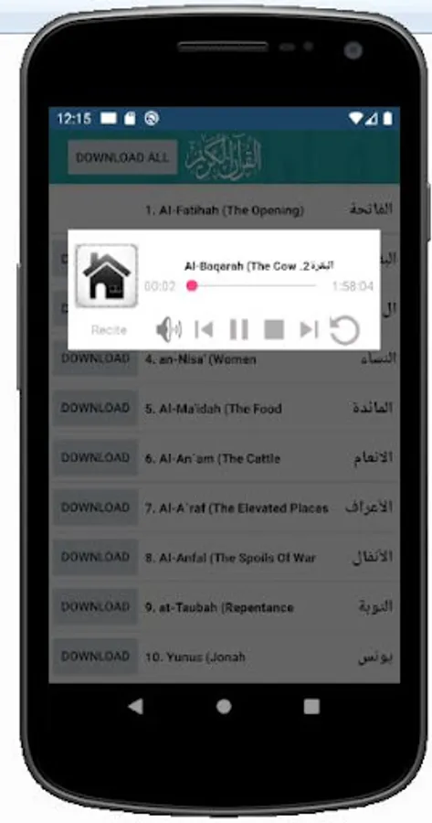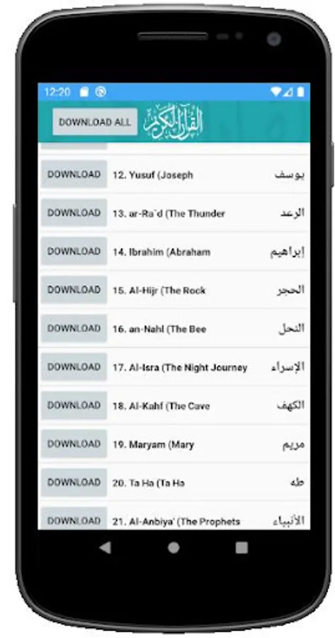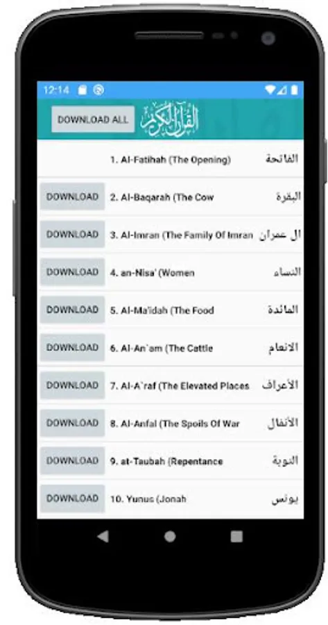 In this al quran android application you will find quran mp3 , our quran sharif que with surah al quran names are translated to English.