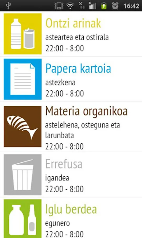 Gure bereizten etxeetako lagunduko hondakinak Digun behar aplikazioa bezala. Herrietan Ondorengo gai egutegia bakoitza bistaratuz ateratzeko lagunduko ordutegiak digu eta.