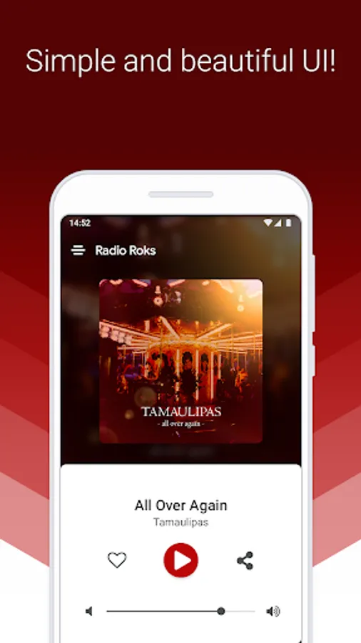 • You can start/pause the stream, add tracks to favourite list on each screen.