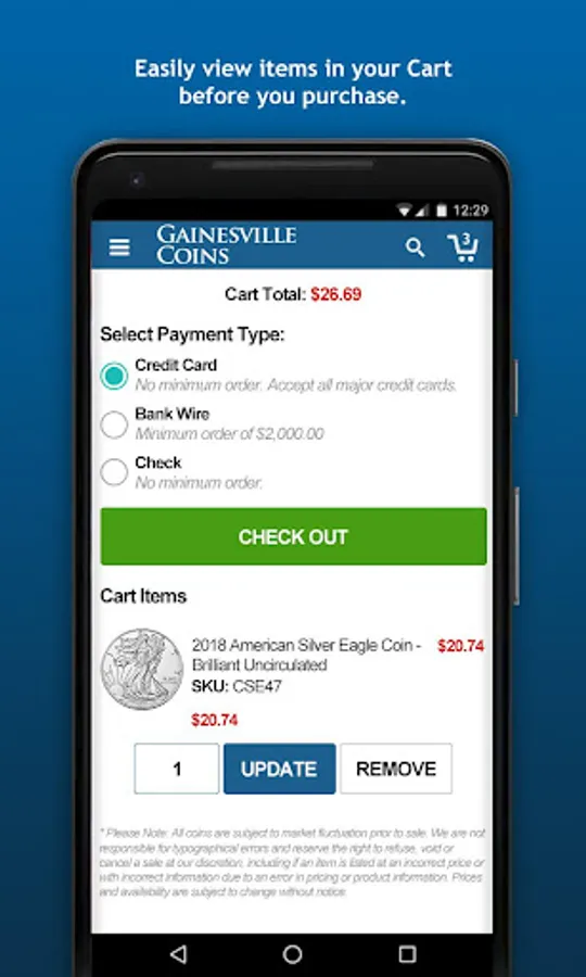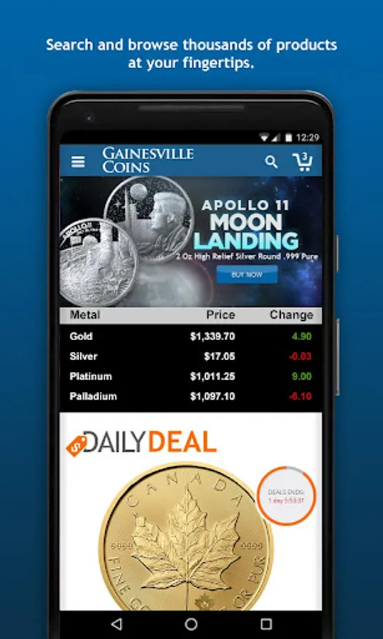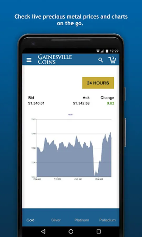 It's never been easier to purchase gold, silver, and other precious metals online. Gainesville Coins has everything you need to start securing your financial future with physical bullion. Everything you enjoy about the GainesvilleCoins.com website is now available everywhere you go with the Gainesville Coins app! Don't miss out on any of these great features when surfing the internet on your phone or mobile device: