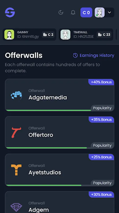 With Gainny, you can earn rewards such as Mobile Refill, Amazon gift cards, Paypal, Bitcoin and more just by completing offers or playing your favorite casual games.