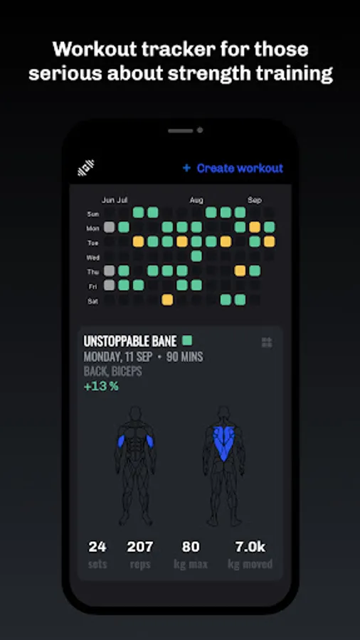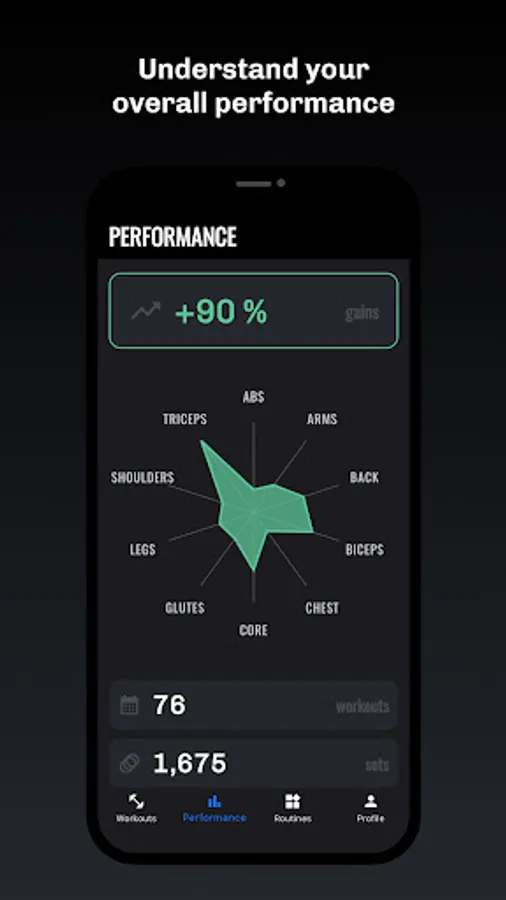 • See gains per muscle group through intuitive charts and analytics.