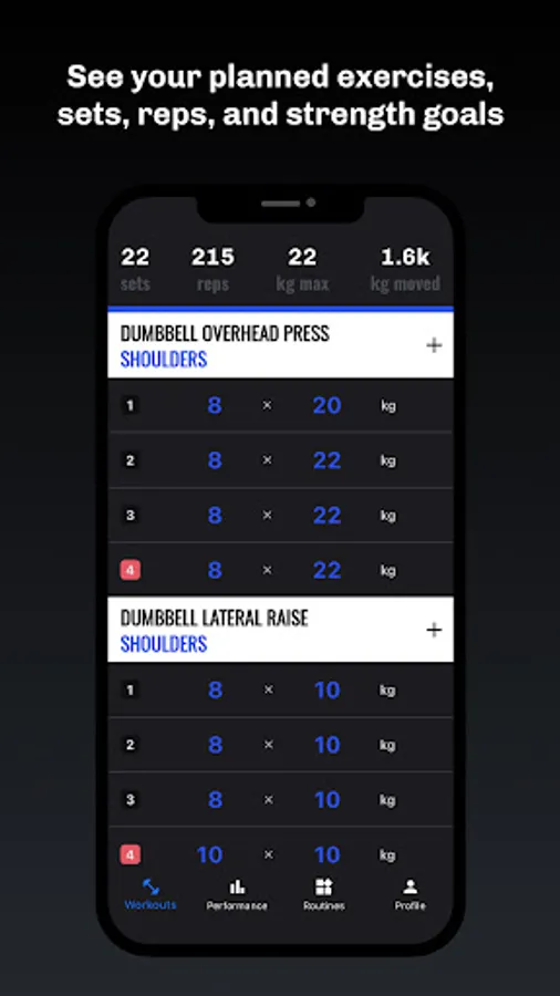 • Log workouts, including sets, reps, and weight easily and quickly.