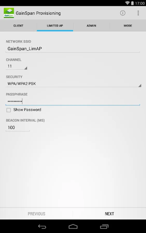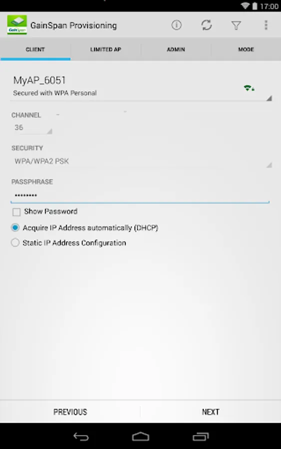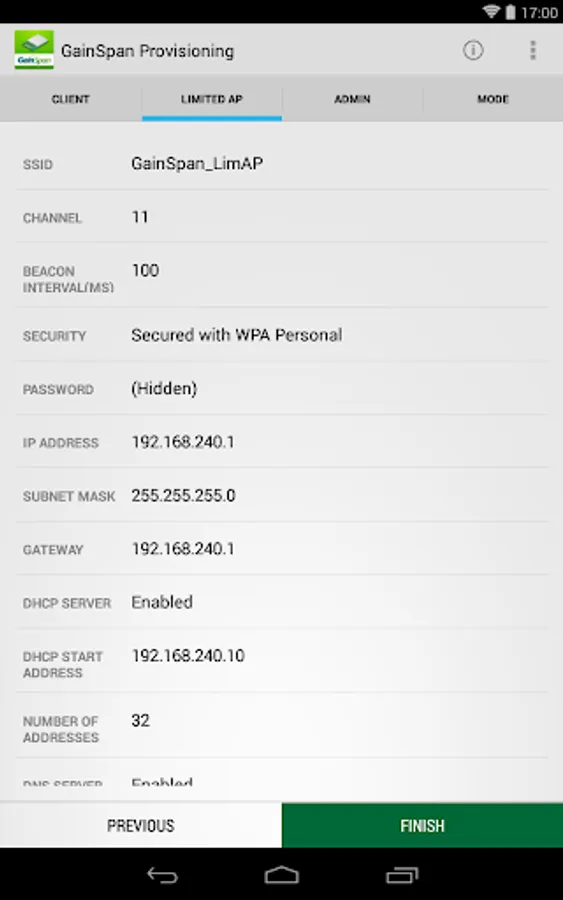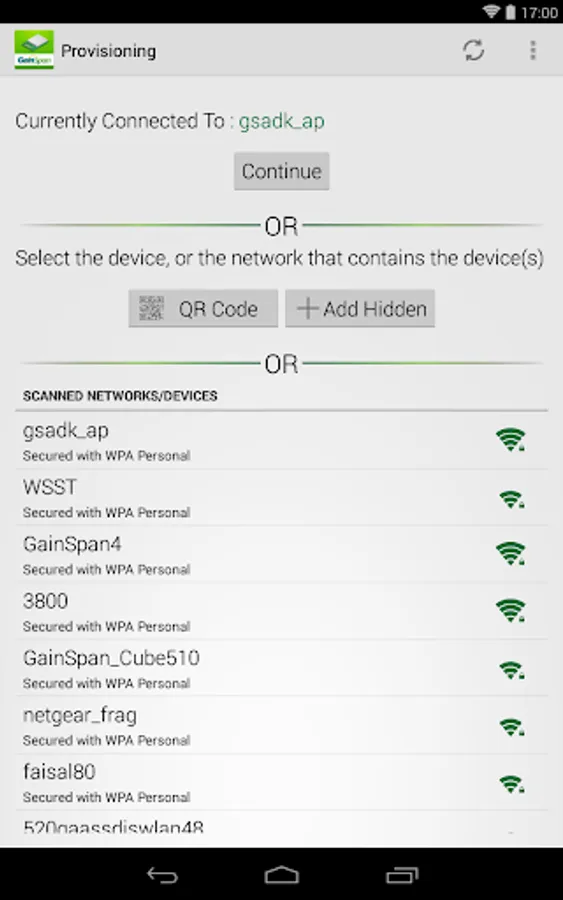 The Gainspan Provisioning Application is used for provisioning and configuration of devices based on Gainspan Wi-Fi module and/or SoC.