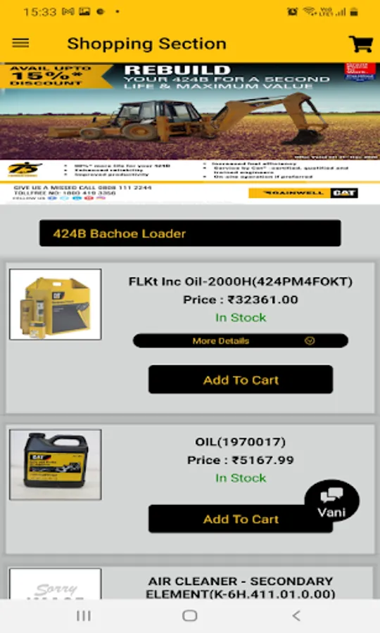 Gainwell Vanijya is an E-Commerce mobile app of Gainwell Commosales Pvt Ltd, tailor made to serve the retail customers better. Customers can log in to search frequently required parts and preventive maintenance kits based on their equipment model, add to shopping cart, select any discount offers if applicable, select delivery option and place orders by making online payment. Customers can also track the status of their active orders. Language preference of English and Hindi is available. The app also features a chatbot Vani to assist customers for general queries