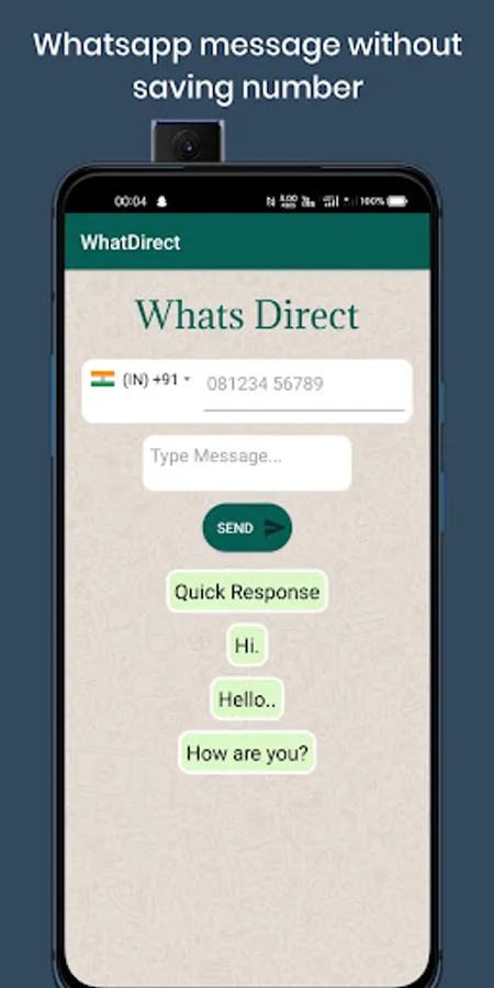 WhatsDirect is a useful utility to WhatsApp directly without saving unknown numbers. Direct message supports mobile number entering as well as copy paste from call logs facility to enter mobile number.