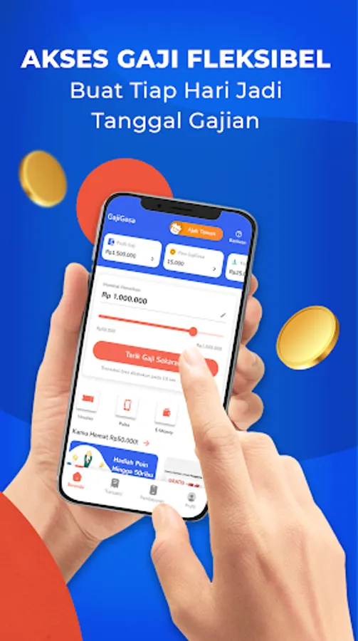 GajiGesa Poin merupakan metode pembayaran yang bisa kamu gunakan untuk bayar dan beli layanan dalam aplikasi. Poin yang kamu miliki takkan kedaluwarsa, sehingga bisa dipakai untuk transaksi di GajiGesa kapan pun kamu membutuhkannya. Metode cermat ini pun bisa digunakan perusahaan sebagai bentuk reward, agar karyawan bisa menjadi pekerja yang lebih hemat. GajiGesa Poin sendiri bisa kamu raih dengan menyelesaikan misi dalam aplikasi.