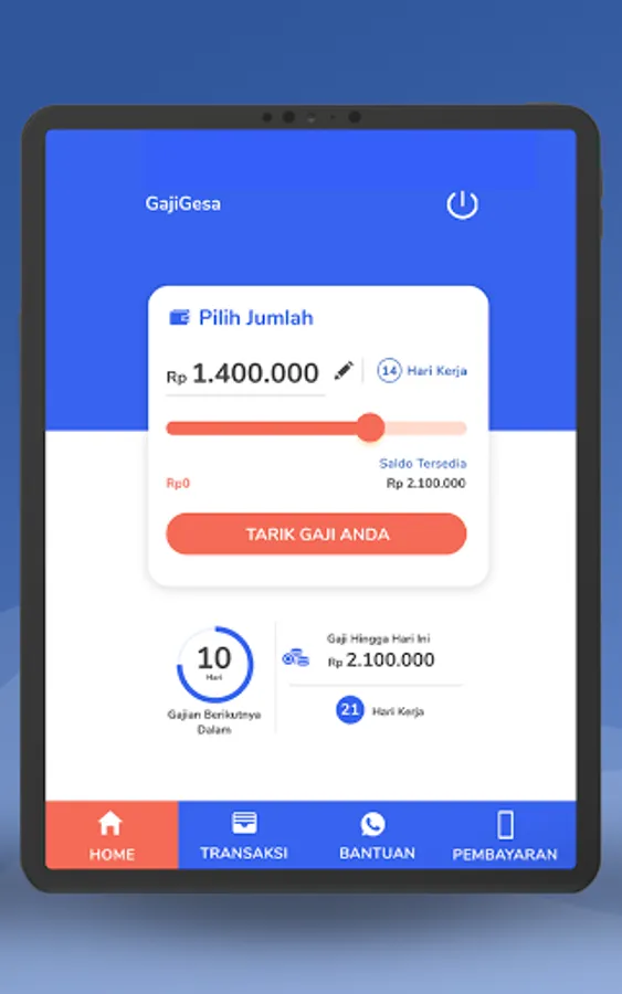 Dengan menggunakan GajiGesa sebagai aplikasi kesehatan finansial karyawan, kamu bisa memiliki akses penuh terhadap seluruh penghasilanmu. Tak ada lagi stres finansial karena kamu bisa gajian instan, setiap hari.