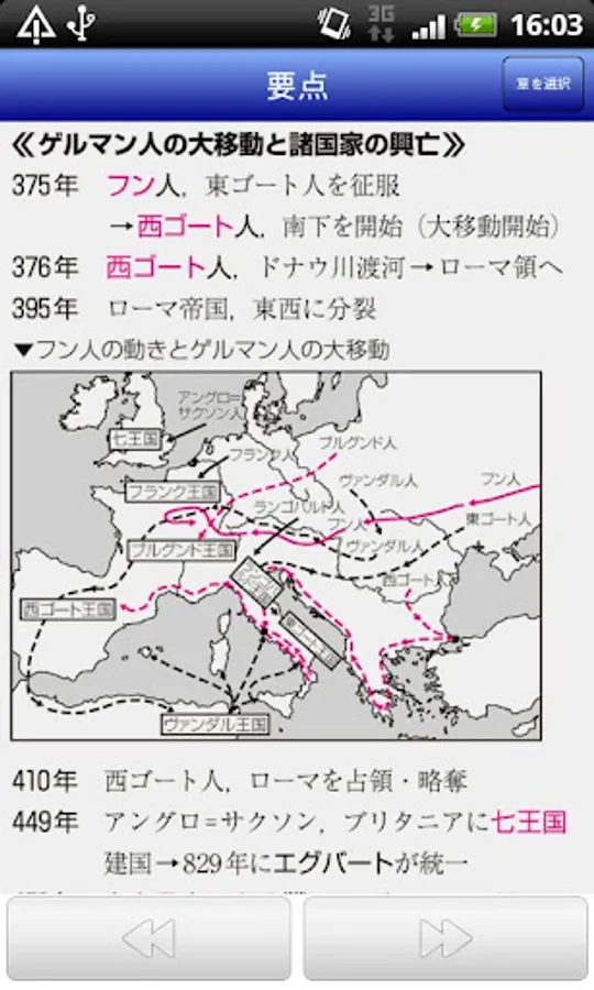 問題を解きながら,関連する「要点」を確認できます。なお,ごく一部関連する「要点」がない問題があります。「要点」から「問題」に戻る時は,端末の「戻る」キーで戻ることができます。