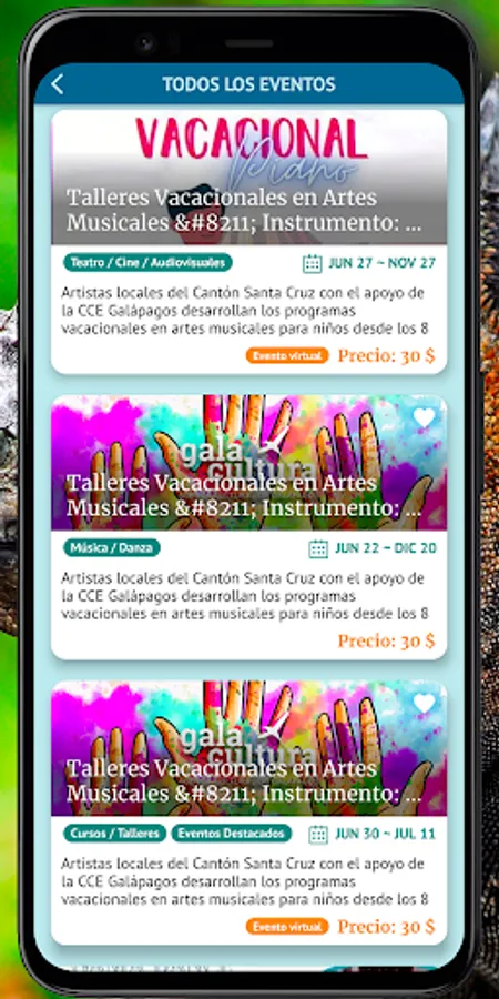 In this application you will find all the cultural events in the Galapagos Islands, do not forget to share them, enjoy your cultural search with us!