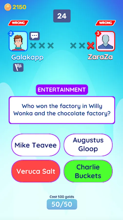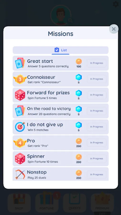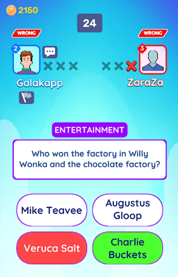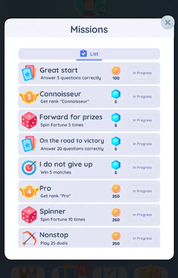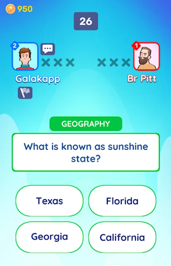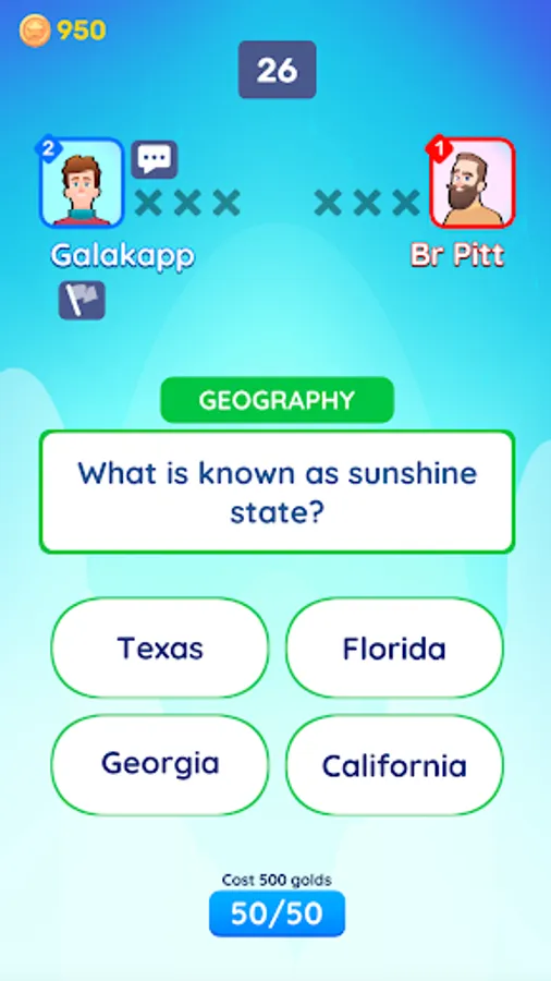 Online quiz with lots of interesting questions, daily tasks, fortune wheel and other fun. Compete against players in one-on-one or five-player knockout modes. Possibility to play in 6 categories: Arts, Entertainment, Geography, History, Science, Sport.