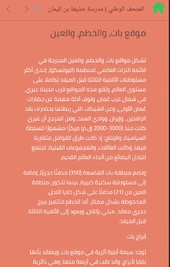One of the most important archaeological sites in the Sultanate that dates back to the Bronze Age or the Majan civilization is the site of Bat, Al-Khatm and Al-Ain