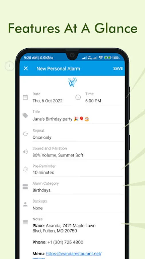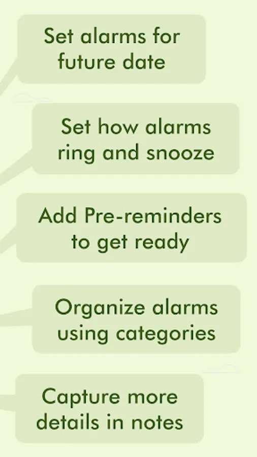 • FREE CLOUD STORAGE: All your alarms are stored on the cloud, so when you switch phones, your alarms appear instantly when you reinstall the app.