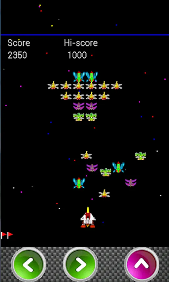 Can you defeat wave after wave of dazzling alien invaders to save the galaxy. Blast the invaders as they spin and whirl through space in this old school arcade space shooter. After 4 fantastic waves you'll get a bonus round, score lots of points to insure you get that next free life.