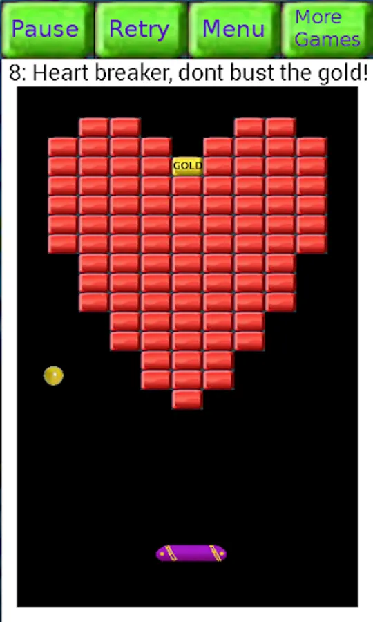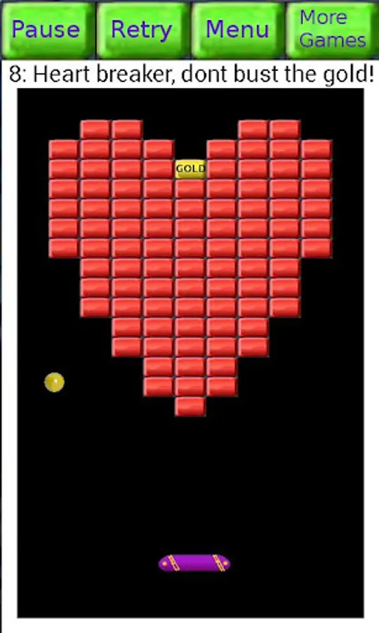 A fresh new twist on the original classic. Similar in style to the old brick and block buster arcade games however the aim of this game is not to break all the bricks but to make a big enough hole so you can get to the gold!