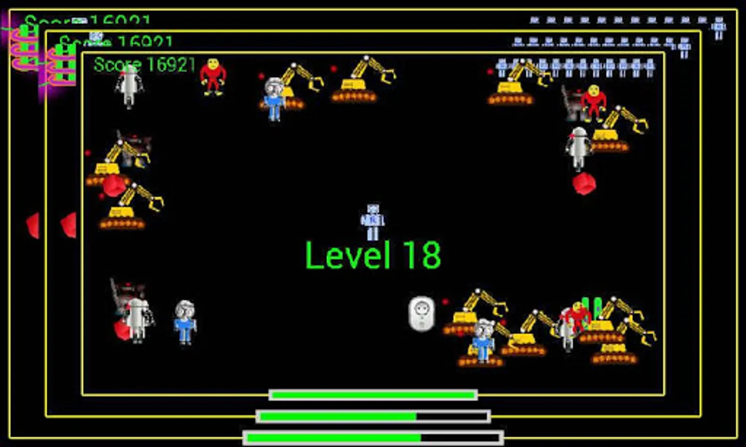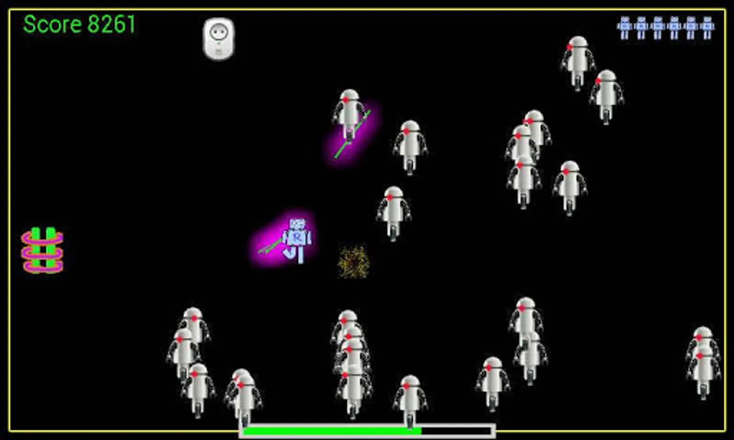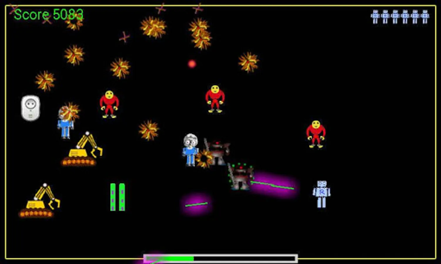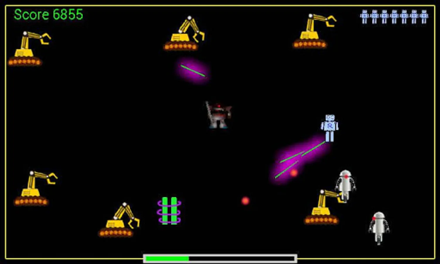 Help Ron escape from the evil killer robots in this retro fast paced arcade game. Robot Ron is surrounded on all sides, he must keep moving and keep shooting to avoid the evil clutches of the killer robots