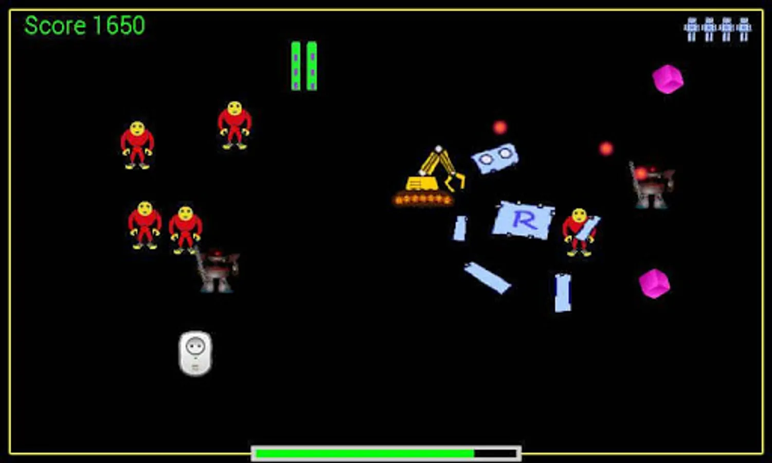 Help Ron escape from the evil killer robots in this retro fast paced arcade game. Robot Ron is surrounded on all sides, he must keep moving and keep shooting to avoid the evil clutches of the killer robots
