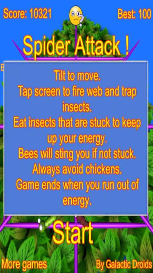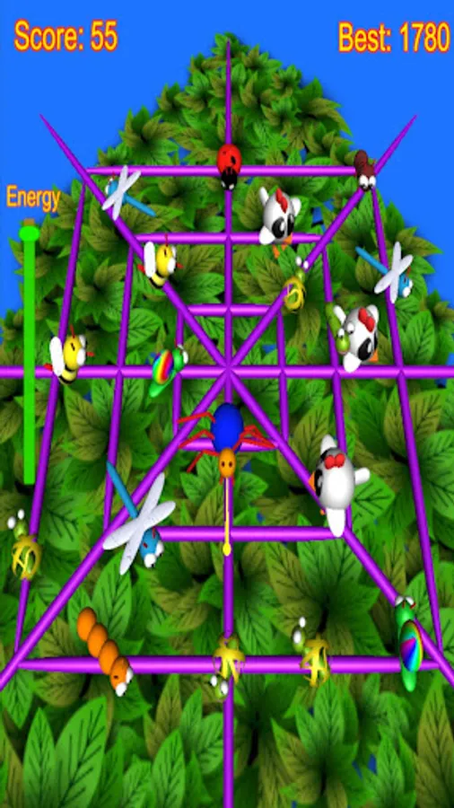 Shoot your web at the pesky insects, glue them to the web then scurry over and devour your meal!