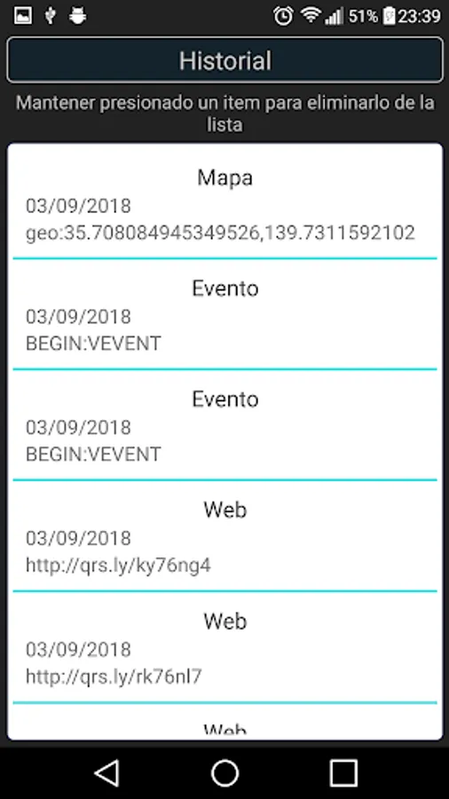 - Once scanned the application will show the result on screen and depending on the type of data will offer some action to follow.